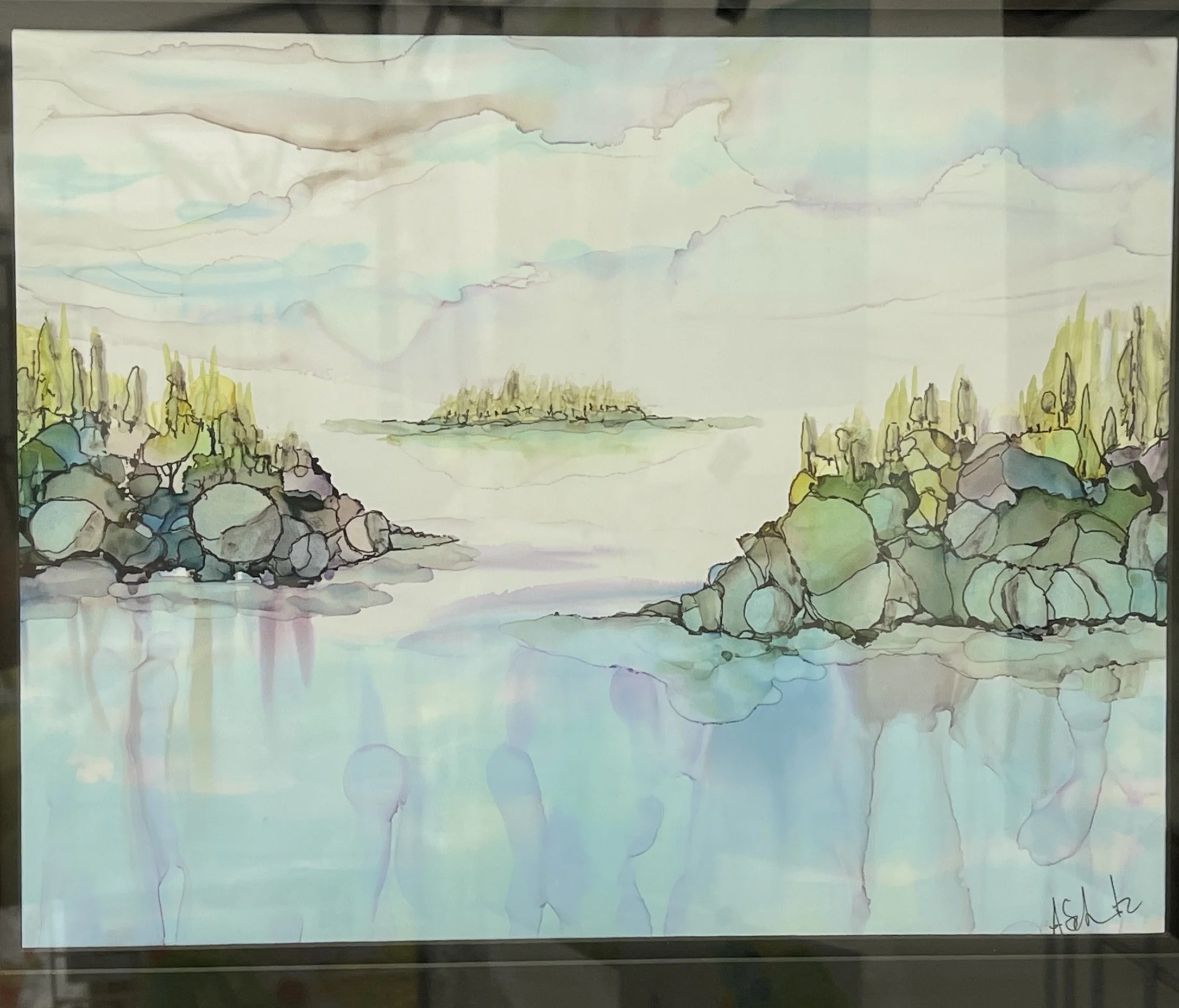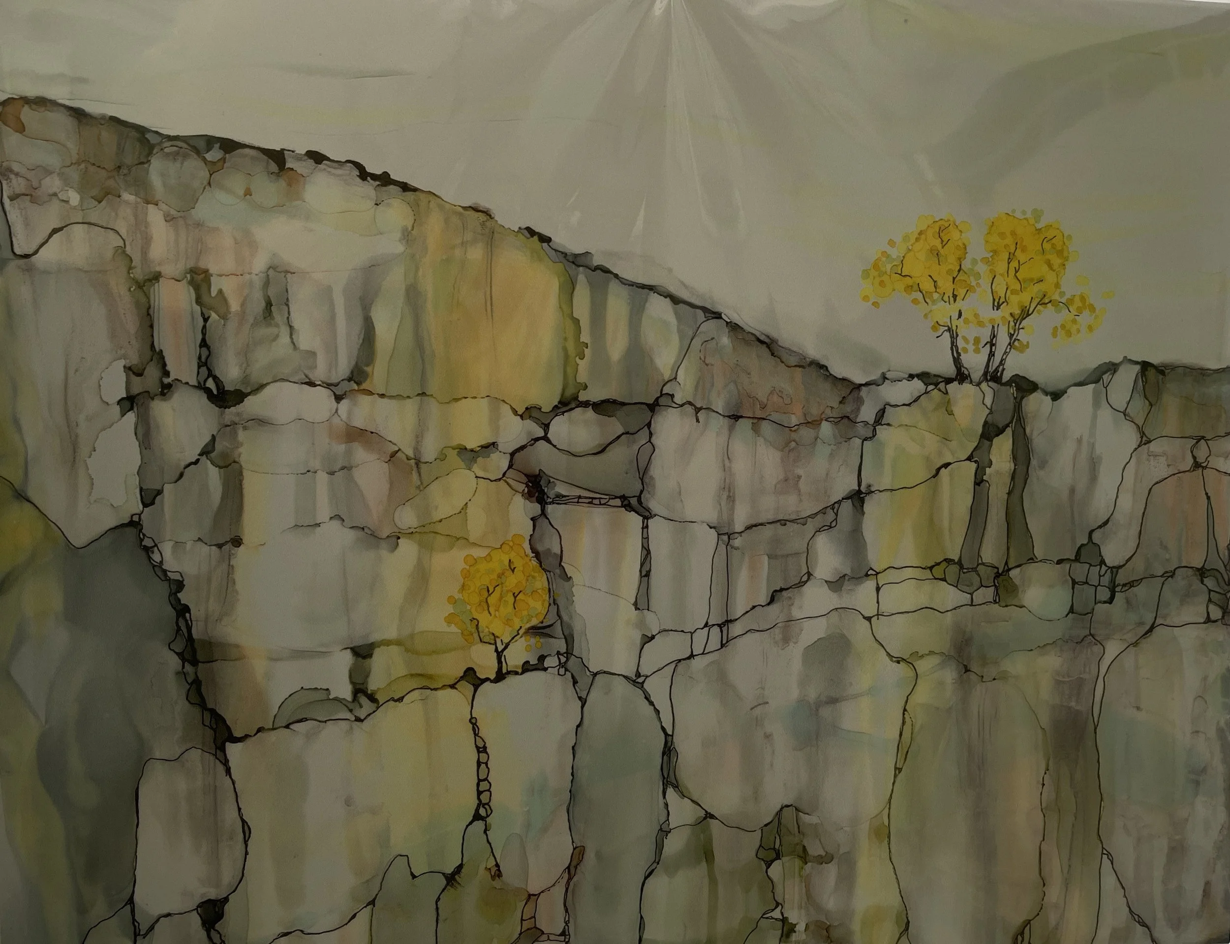 We all struggled through Lockdown, Covid isolation, change in routine and loss of connection with loved ones. For me, It was a chance to get off the “ big Hamster wheel” of life and spin slowly , on my own little wheel. It allowed the art to flow out of my hand, with a quiet mind, and Labradors gently snoring at my feet. Alcohol ink allowed me to usher in a form of “ Positive alcoholism” sort of speak. The delight of never knowing what’s going to emerge on the page. I took Pen and Ink with some splashes of Alcohol and the fun never stops.